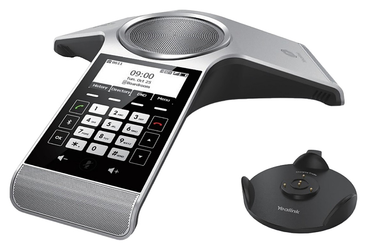 IP-конференц-телефон Yealink CP930W-Base предназначен для организации связи корпоративного уровня в конференц-залах малого и среднего размера. Прибор имеет широкий набор функций для передачи звука высокого качества, отличительной особенностью является подключение по технологии DECT к базовым станциям Yealink, что позволяет использовать устройство в переговорных комнатах с ограниченным доступом к интернет-портам и электророзеткам. Модель оснащена встроенной литиевой аккумуляторной батареей, 3 встроенными разнонаправленными микрофонами и монохромным графическим жидкокристаллическим дисплеем. Y-образный корпус телефона выполнен из пластика с поверхностью серебристого оттенка, уплощенный корпус базовой станции – из пластика с поверхностью оттенка классический серый.