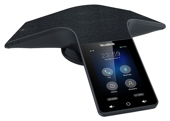 IP-конференц-телефон Yealink CP935W предназначен для организации связи корпоративного уровня в конференц-залах малого и среднего размера. Прибор имеет широкий набор функций для передачи звука высокого качества и простой пользовательский интерфейс на базе операционной системы Linux. Модель оснащена встроенной аккумуляторной батареей, 6 встроенными микрофонами, сенсорным емкостным жидкокристаллическим дисплеем с олеофобным (устойчивым к отпечаткам пальцев) покрытием. Ультратонкий Y-образный корпус выполнен из пластика с поверхностью черного цвета, акустически прозрачная влагостойкая ткань на верхней стороне телефона черного цвета.