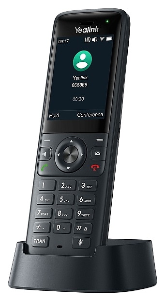 Wi-Fi-IP-телефон Yealink AX83H предназначен для организации связи на предприятиях малого и среднего бизнеса. Использование беспроводных интерфейсов предоставляет пользователю мобильность и гибкость коммуникации, широкая зона покрытия и передовая технология бесшовного роуминга позволяют автоматически переключаться между точками доступа без разрывов соединения, устройство гарантирует профессиональный звук, четкая и качественная передача голосовых данных во время вызова обеспечивается благодаря технологиям Optima HD Audio и интеллектуального шумоподавления Smart Noise Cancel. Трубка оснащена цветным TFT дисплеем и клавиатурой с подсветкой. Корпус трубки и подставка выполнены из пластика с поверхностью черного цвета.