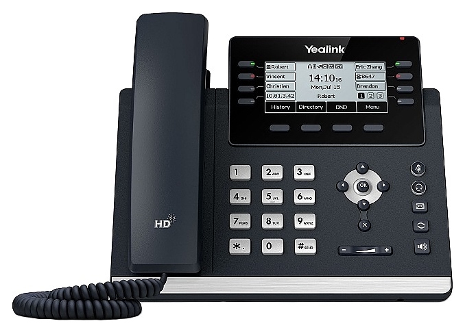 Настольный IP-телефон Yealink SIP-T43U предназначен для организации связи на предприятиях малого и среднего бизнеса. Приборы серии T4 отличаются высоким качеством передачи звука, обновленная техническая составляющая позволила ускорить длительность перезагрузки и пользовательский отклик в процессе работы, унифицированная прошивка упрощает управление и обслуживание, поддержка инициализации и массового развертывания с помощью Yealink Redirection Provisioning Service (RPS) и механизма загрузки, которые помогают начать работу без сложных ручных настроек. Модель оснащена проводной трубкой и монохромным графическим жидкокристаллическим дисплеем. Корпусы базы и трубки выполнены из пластика с поверхностью серого оттенка.