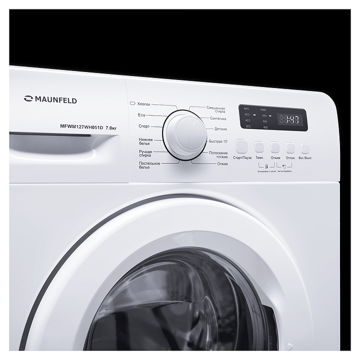 Стиральная машина Maunfeld MFWM127WH051D используется в домашних условиях, а также небольших прачечных и гостиничных комплексах для стирки, полоскания и отжима белья, одежды и тканей. Модель оснащена фронтальным люком, съемным контейнером для моющих средств с 3 отсеками, сливным шлангом, кабелем питания с вилкой, электромеханической панелью управления с поворотным переключателем программ, функциональными кнопками, сигнальными лампами программ и цифровым дисплеем с белой светодиодной подсветкой индикации. Корпус выполнен из металла с антикоррозийным покрытием белого цвета, барабан – из высококачественной нержавеющей стали.