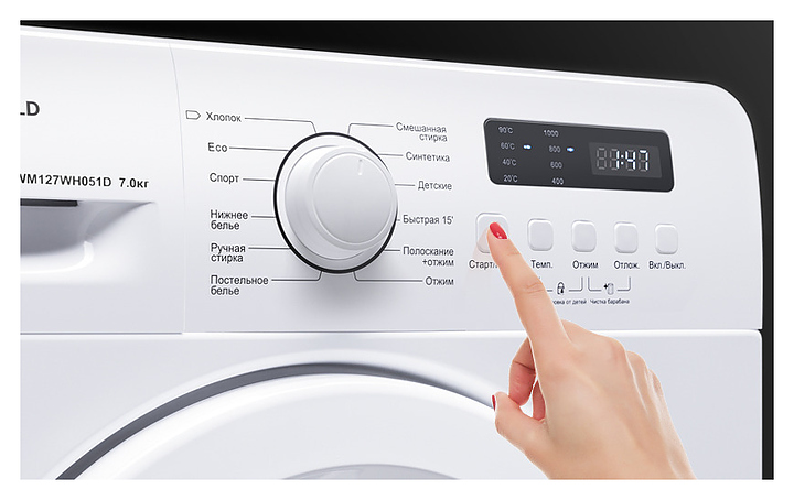 Эта модель оснащена множеством полезных функций, таких как выбор скорости отжима, контроль баланса и выбор температуры стирки, она также имеет цифровой дисплей, который позволяет легко контролировать процесс стирки и выбирать оптимальные настройки