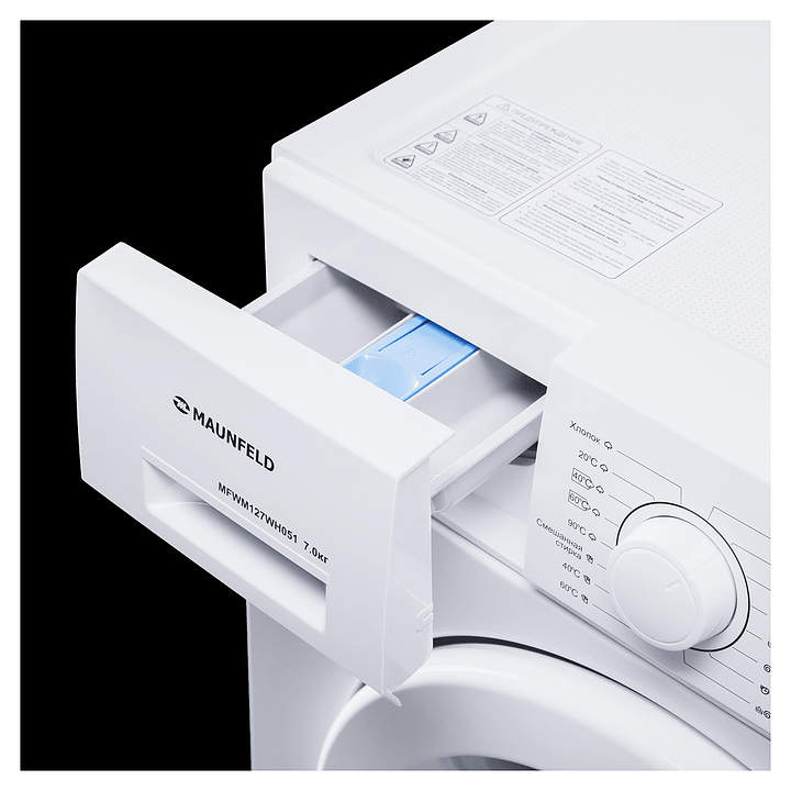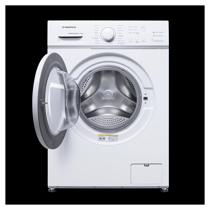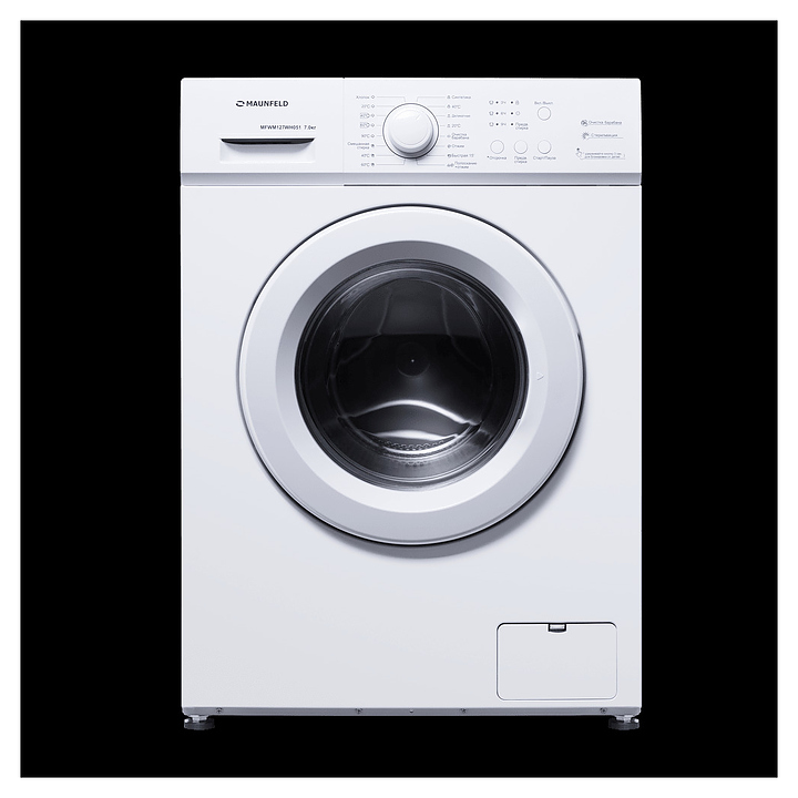 Стиральная машина Maunfeld MFWM128WH053 используется в домашних условиях, а также небольших прачечных и гостиничных комплексах для стирки, полоскания и отжима белья, одежды и тканей. Модель оснащена фронтальным люком, съемным контейнером для моющих средств с 3 отсеками, сливным шлангом, кабелем питания с вилкой, электромеханической панелью управления с поворотным переключателем программ, функциональными кнопками, сигнальными лампами программ и цифровым дисплеем с белой светодиодной подсветкой индикации. Корпус выполнен из металла с антикоррозийным покрытием белого цвета, барабан – из высококачественной нержавеющей стали.