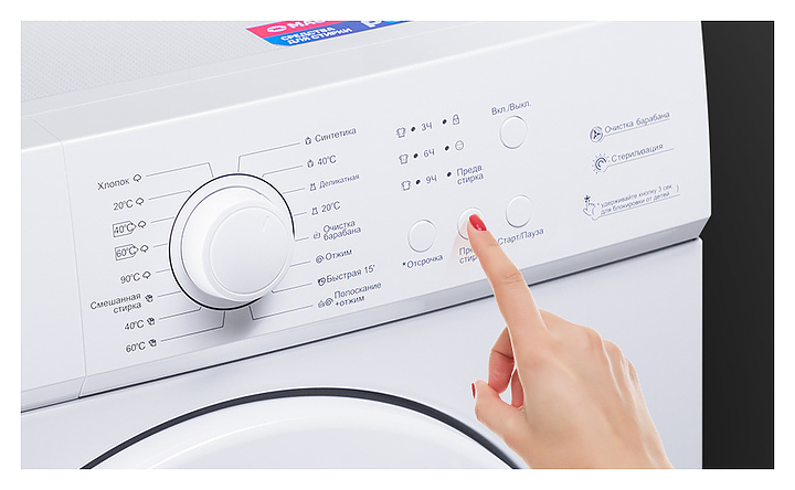 Электронное управление с LЕD дисплеем позволяет с легкостью включить один из 16 режимов стирки:
