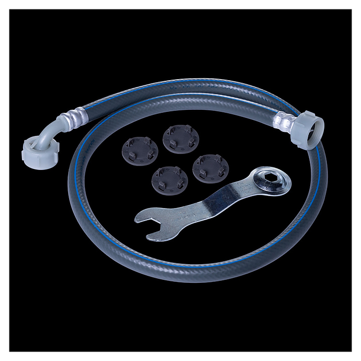 В комплект поставки входят шланг для подачи воды, набор заглушек и инструкция по эксплуатации.