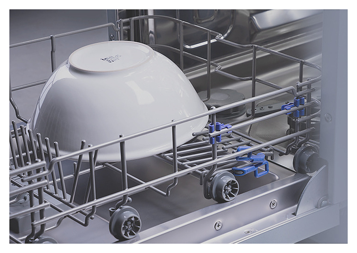 Благодаря использованию специальных корзин и дополнительного выдвижного лотка для столовых приборов позволяет вымыть 10 комплектов посуды