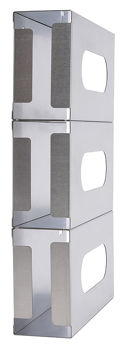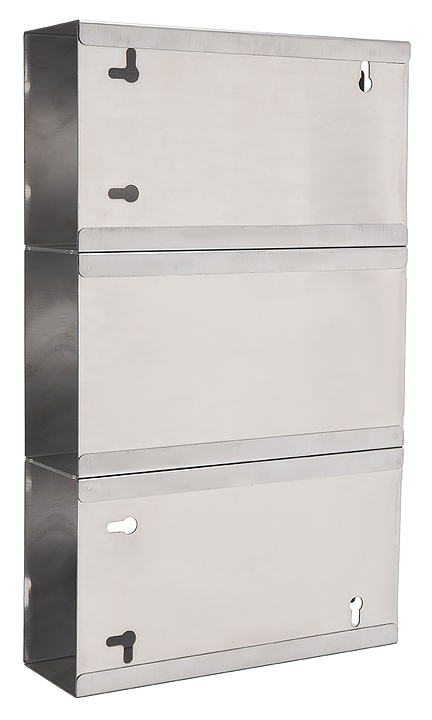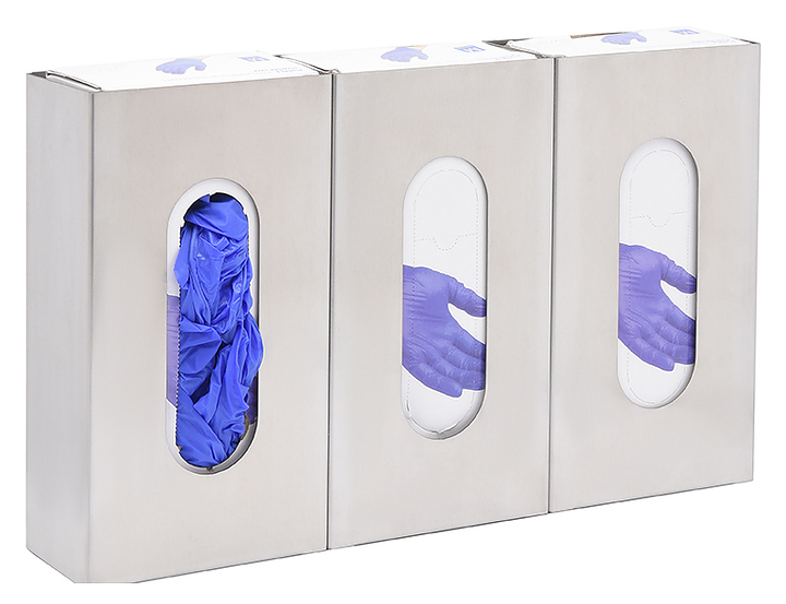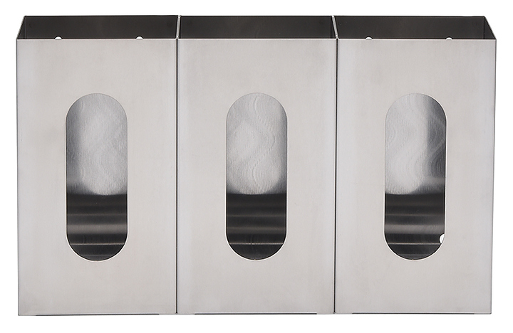 Тройной диспенсер ЦПО D-008 предназначен для хранения и выдачи одноразовых перчаток в больницах, клиниках, стоматологических кабинетах, поликлиниках, лабораториях, на предприятиях пищевой промышленности и в учебных заведениях. Дозатор позволяет разместить 3 коробки с перчатками разных размеров. Диспенсер монтируется на стену или на специальную подставку. Корпус выполнен из пищевой нержавеющей стали AISI 430. В комплект поставки входят 2 самореза и 2 дюбеля. Дополнительные характеристики: