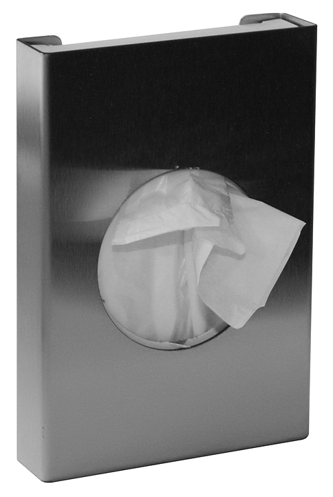 Диспенсер ЦПО DG-001 предназначен для хранения и выдачи гигиенических пакетов в туалетных комнатах фитнес клубов, торговых и офисных центров, ресторанов, кафе, баров, автозаправочных станций, аэропортов и вокзалов, гостиниц и санаториев, парикмахерских, учебных и медицинских учреждений, предприятий пищевой промышленности и других местах общественного пользования. Дозатор позволяет размещать средства индивидуальной защиты в коробках. Диспенсер монтируется на стену или на специальную подставку. Корпус выполнен из пищевой нержавеющей стали AISI 430. В комплект поставки входят 2 самореза и 2 дюбеля. Дополнительные характеристики: