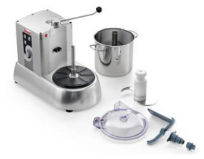 Куттер Sirman C-TRONIC 9 VV предназначен для измельчения, взбивания, смешивания продуктов, позволяет быстро готовить кремы, паштеты, соусы на предприятиях общественного питания и торговли. Модель оснащена высокопроизводительным вентилируемым двигателем для постоянного пользования, вариатором скорости и 2 микровыключателями. Съемная чаша выполнена из нержавеющей стали AISI 430, корпус - из алюминия, крышка - из прозрачного тритана. В комплект поставки входят гладкий нож, лопатка, насадка для взбивания и скребок. Дополнительные характеристики: