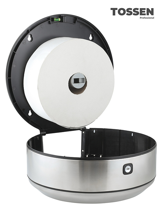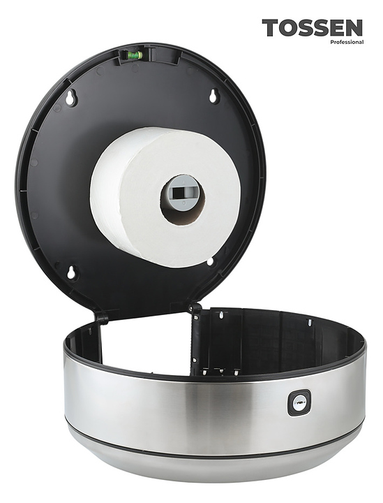 Диспенсер TOSSEN D-500 M серии Elite line предназначен для размещения и подачи туалетной бумаги из больших рулонов в общественных санитарных узлах гостиниц, предприятий общепита, медицинских учреждений и других мест массового пребывания со средней проходимостью. Корпус изготовлен из ударопрочного пластика и нержавеющей стали. Комплектация: