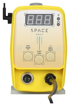 Комплекс дозирования SpaceAqua Dose 200-200 используется для точного введения химических реагентов в воду с целью изменения ее химического и биологического состава на предприятиях пищевой и фармацевтической промышленности, совместно с промышленными котлами, в системах кондиционирования воздуха, системах теплоснабжения и водоподготовки жилищно-коммунальных и животноводческих хозяйств. Принцип работы: дозирующий клапан крепится к месту дозации в водный поток, приемный клапан и поплавок находятся в емкости с дозируемым раствором, поплавок отвечает за определение уровня, при отсутствии жидкости он опускается, размыкая сигнал, подающийся на насос-дозатор, и останавливая его работу, а при наполнении поднимается, замыкая сигнал, и насос-дозатор начинает работу, всасывает фиксированный объем реагентов из бака, а затем выталкивает его в систему, что обеспечивает точное дозирование. Насос-дозатор оснащен электронной панелью управления с цифровым дисплеем. Расходная емкость выполнена из химически стойкого и нейтрального для пищевой продукции полимера. Комплектация: