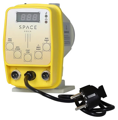 Комплекс дозирования SpaceAqua Dose 500-IMP-200-Dn32 используется для точного введения химических реагентов в воду с целью изменения ее химического и биологического состава на предприятиях пищевой и фармацевтической промышленности, совместно с промышленными котлами, в системах кондиционирования воздуха, системах теплоснабжения и водоподготовки жилищно-коммунальных и животноводческих хозяйств. Принцип работы: дозирующий клапан крепится к месту дозации в водный поток, приемный клапан находится в емкости с дозируемым раствором, водосчетчик определяет текущий расход воды и передает импульс дозирующему насосу, который всасывает фиксированный объем реагентов из бака, а затем подает его в систему, что обеспечивает точное дозирование. Насос-дозатор оснащен электронной панелью управления с цифровым дисплеем. Расходная емкость выполнена из химически стойкого и нейтрального для пищевой продукции полимера. Комплектация: