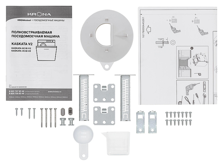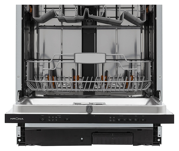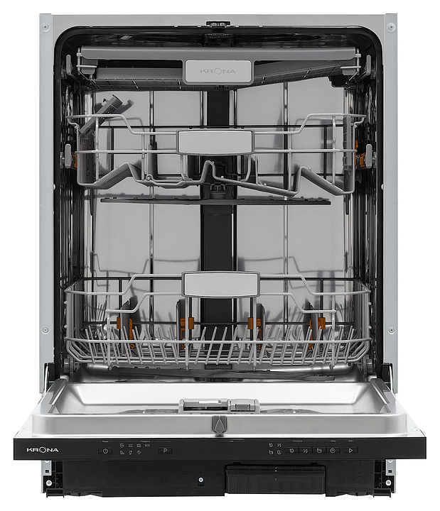 Встраиваемая посудомоечная машина Krona KASKATA 60 BI V2 линейки OPTIMA предназначена для гигиенической обработки и последующей сушки различной посуды в гостиничных комплексах и домашних условиях. Модель оснащена камерой с откидной дверью с интегрированной рукояткой, 3 разбрызгивателями, дозаторами моющих и ополаскивающих средств, устройством умягчения воды, кабелем питания с вилкой, расположенной на верхнем торце двери электорнной панелью управления с функциональными нажимными клавишами, светодиодными сигнальными лампами и цифровым дисплеем с белой подсветкой индикации. Внутренняя облицовка камеры и двери выполнена из высококачественной нержавеющей стали, панель управления – из полимера черного цвета.