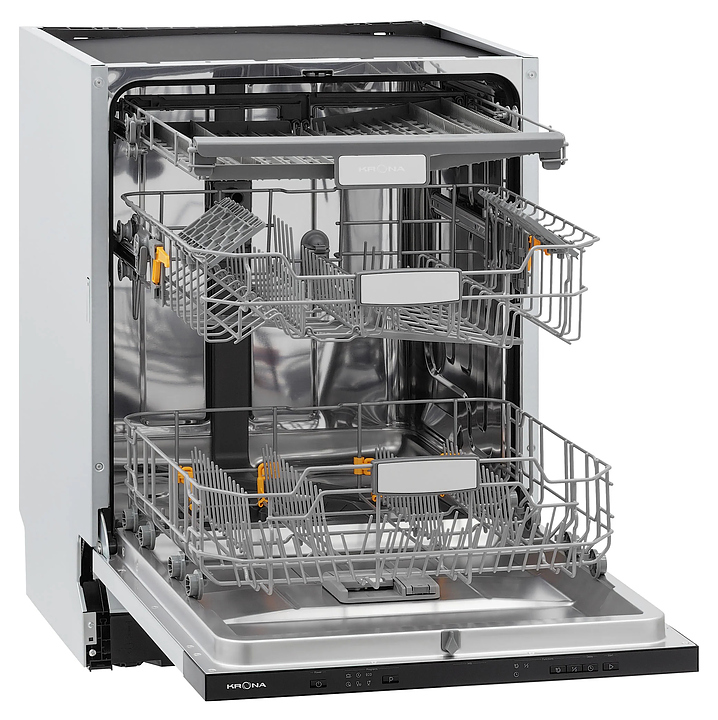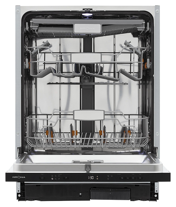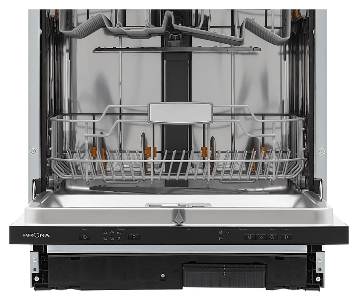 Встраиваемая посудомоечная машина Krona WESPA 60 BI V2 линейки OPTIMA предназначена для гигиенической обработки и последующей сушки различной посуды в гостиничных комплексах и домашних условиях. Модель оснащена камерой с откидной дверью с интегрированной рукояткой, 3 разбрызгивателями, дозаторами моющих и ополаскивающих средств, устройством умягчения воды, кабелем питания с вилкой, расположенной на верхнем торце двери электорнной панелью управления с функциональными нажимными клавишами, светодиодными сигнальными лампами и цифровым дисплеем с белой подсветкой индикации. Внутренняя облицовка камеры и двери выполнена из высококачественной нержавеющей стали, панель управления – из полимера черного цвета.