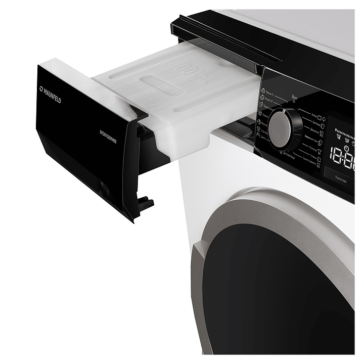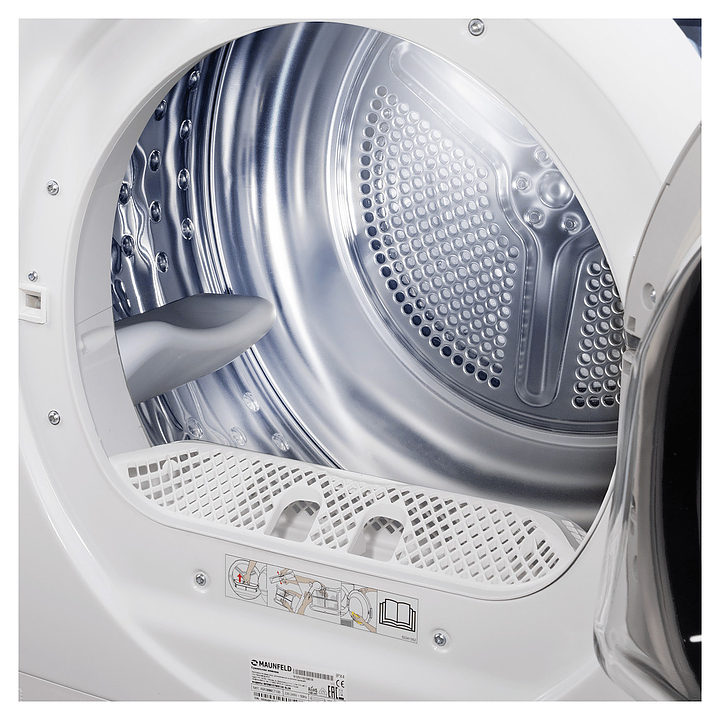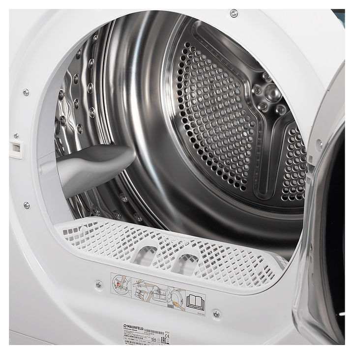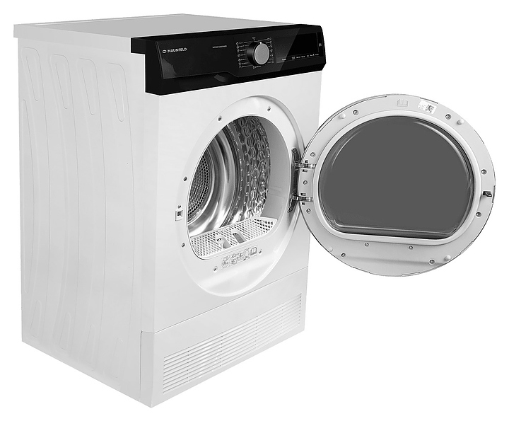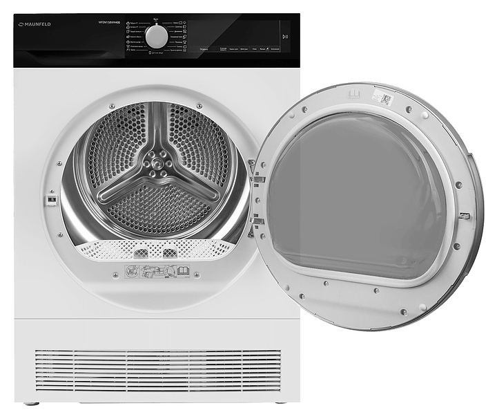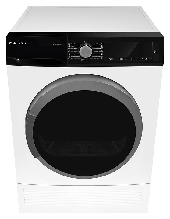 Автоматическая сушильная машина Maunfeld MFDM158WH400 используется в домашних условиях, а также небольших прачечных для сушки одежды, белья и тканей после стирки. Модель оснащена фронтальным загрузочным люком с перенавешиваемой дверью со смотровым окном, кабелем питания с вилкой, электромеханической панелью управления с поворотным переключателем программ, нажимными функциональными клавишами, светодиодными сигнальными лампами и цифровым дисплеем с белой подсветкой индикации. Корпус выполнен из металла с антикоррозийным покрытием белого цвета, внешняя крышка двери люка – из стекла с полупрозрачной дымчатой тонировкой и окантовкой серебристого оттенка, барабан – из высококачественной нержавеющей стали, верхняя фронтальная панель с глянцевой поверхностью черного цвета, переключатель с серебристой поверхностью.