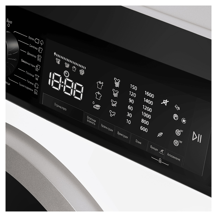 - Встроенный датчик влажности для оптимизации длительности сушки соответственно измеренному уровню