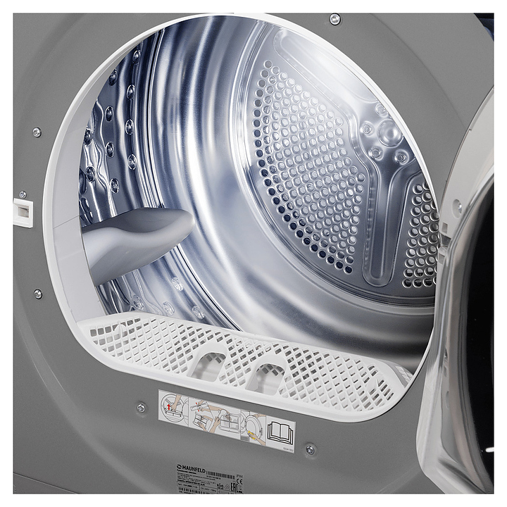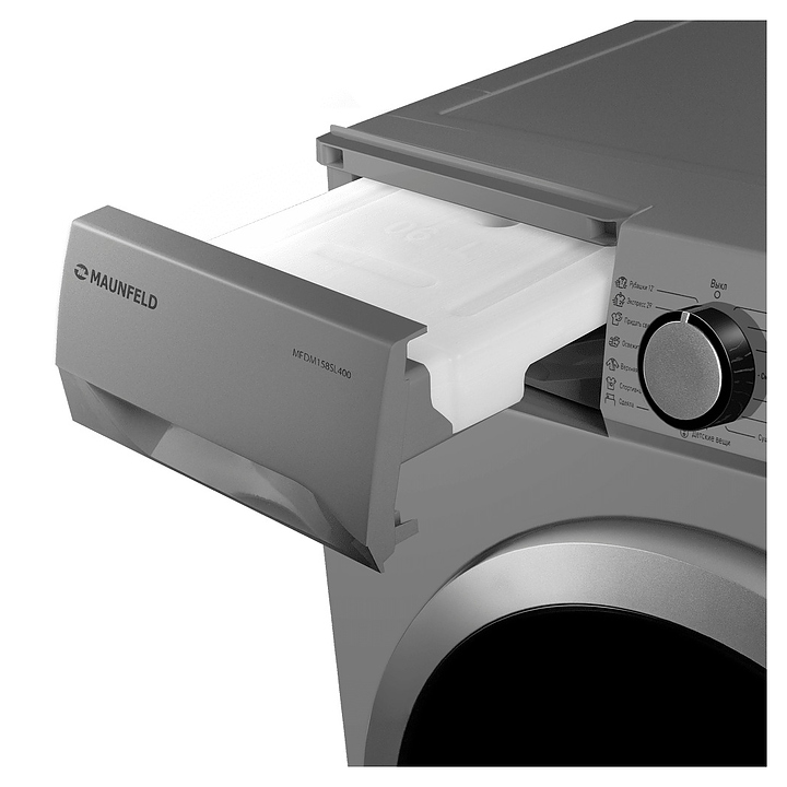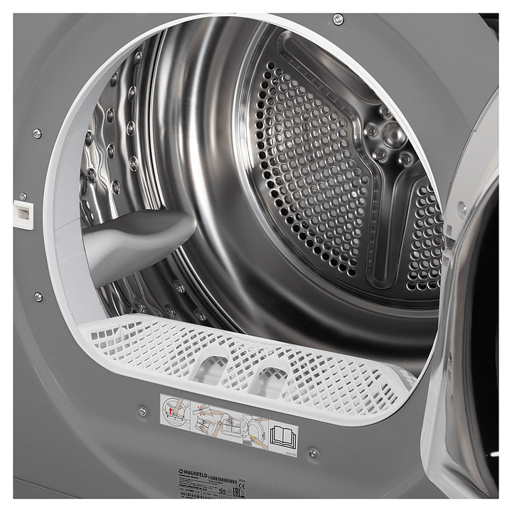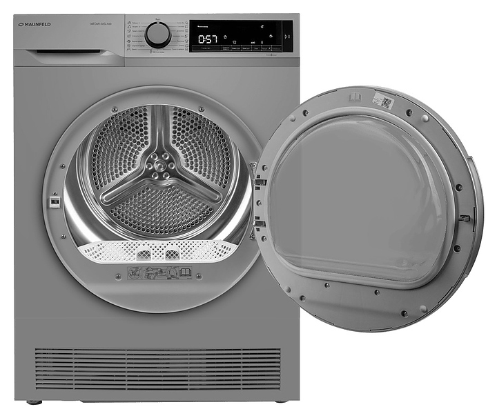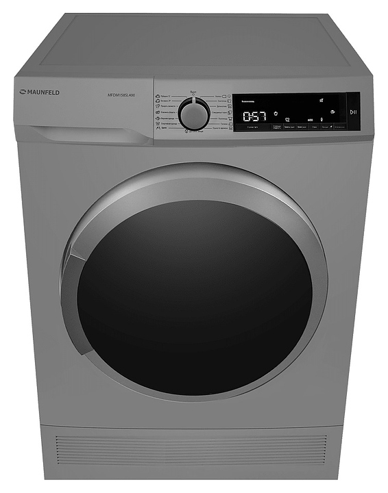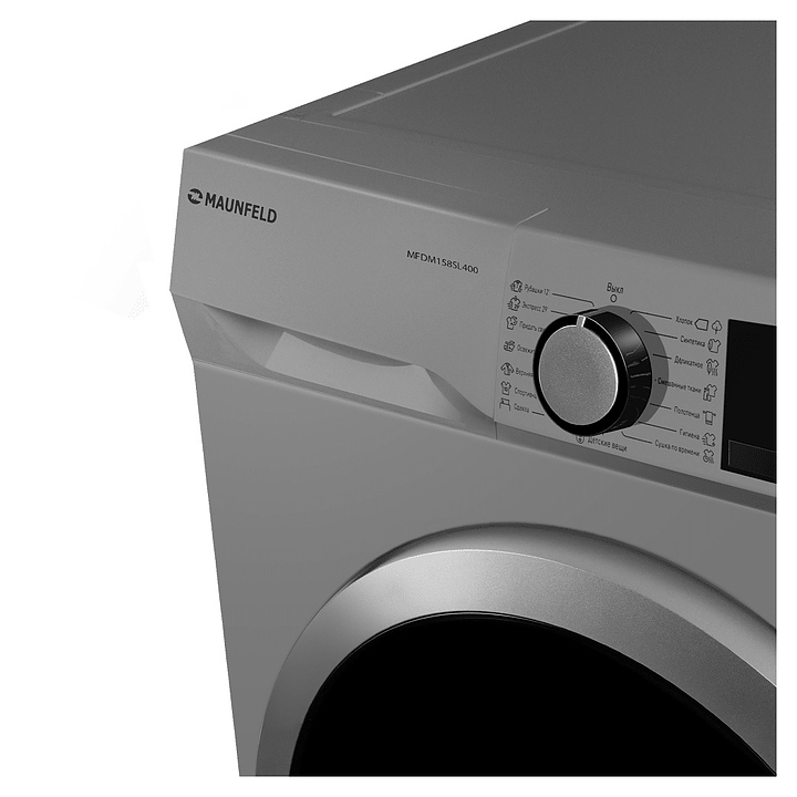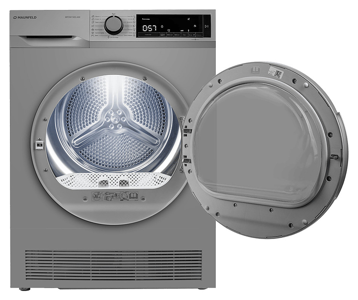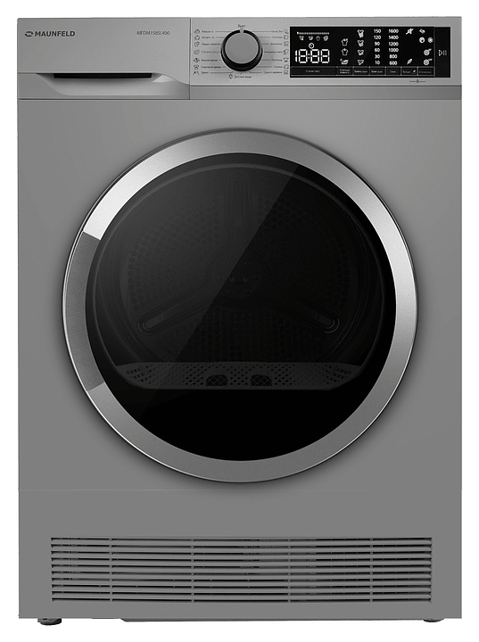 Автоматическая сушильная машина Maunfeld MFDM158SL400 используется в домашних условиях, а также небольших прачечных для сушки одежды, белья и тканей после стирки. Модель оснащена фронтальным загрузочным люком с перенавешиваемой дверью со смотровым окном, кабелем питания с вилкой, электромеханической панелью управления с поворотным переключателем программ, нажимными функциональными клавишами, светодиодными сигнальными лампами и цифровым дисплеем с белой подсветкой индикации. Корпус выполнен из металла с антикоррозийным покрытием цвета нержавеющей стали, внешняя крышка двери люка – из стекла с полупрозрачной дымчатой тонировкой и окантовкой серебристого оттенка, барабан – из высококачественной нержавеющей стали, панель управления с глянцевой поверхностью черного цвета, переключатель с поверхностью серебристого оттенка и чкрной окантовкой.
