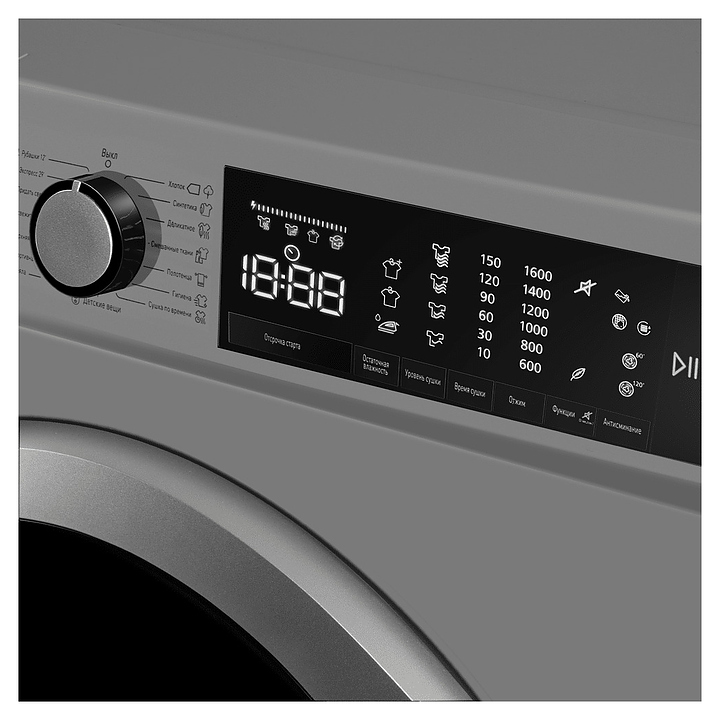 - Встроенный датчик влажности для оптимизации длительности сушки соответственно измеренному уровню