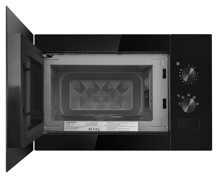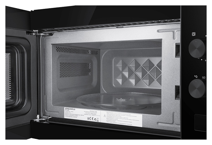 Встраиваемая микроволновая печь Maunfeld JBMO155GB01 предназначена для приготовления пищи, подогрева готовых блюд и ингредиентов, а также размораживания полуфабрикатов в гостиницах, офисах и домашних условиях. Модель оснащена магнетроном, кабелем питания с вилкой, камерой с распашной дверью со смотровым окном и расположенной в правой части фронта электромеханической панелью управления с 2 цилиндрическими поворотными переключателями. Корпус выполнен из стали, фасадные панели черного цвета с полным остеклением без винтового крепежа, внутренняя облицовка камеры – из высококачественной нержавеющей стали, переключатели с черной поверхностью, тарелка – из ударопрочного стекла. Комплектация:
