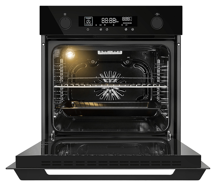 - Турбоконвекция: нагрев заднего кольцевого нагревательного элемента с интенсивным обдувом для одновременного приготовления на нескольких уровнях без смешивания запахов