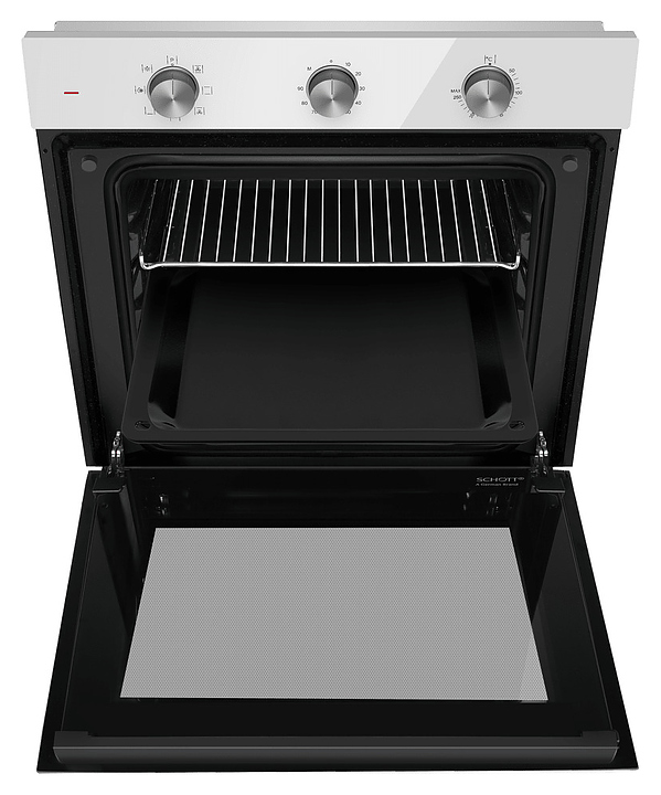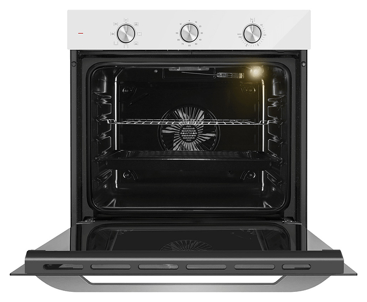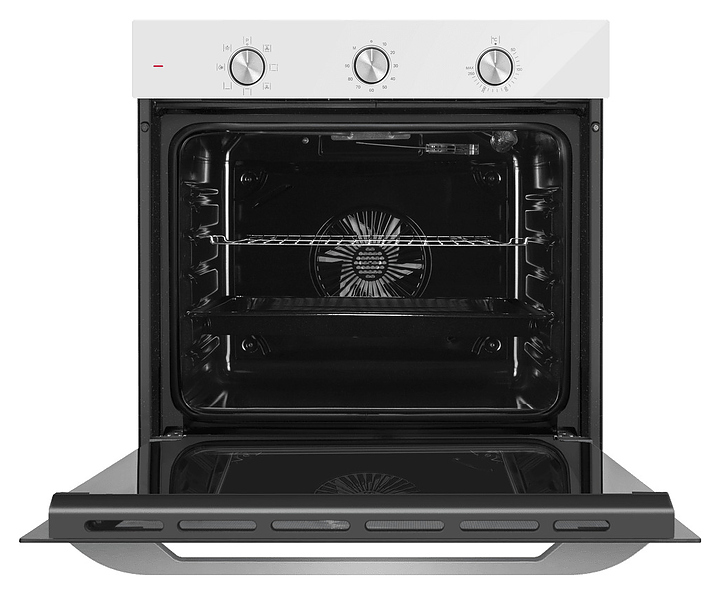 Встраиваемый электрический духовой шкаф Maunfeld FEOF7871W предназначен для приготовления большого ассортимента блюд в домашних условиях. Модель оснащена камерой с расположенным в задней стенке вентилятором, верхним и нижним нагревательными элементами, 2 боковыми стойками с 5 уровнями направляющих для противней, откидной дверью со смотровым окном, уплощенной дугообразной горизонтальной рукояткой во всю ширину двери, кабелем питания с евровилкой и расположенной в верхней части фронта панелью управления с 3 поворотными цилиндрическими переключателями. Корпус выполнен из высококачественной стали, фасадные панели с покрытием белого цвета и полным остеклением без винтового крепежа прозрачным закаленным стеклом, боковые стойки и решетка для гриля – из металла с хромированной поверхностью, противень – из стали с эмалированным покрытием, рукоятка и переключатели – из металла с матовой поверхностью цвета нержавеющей стали.
