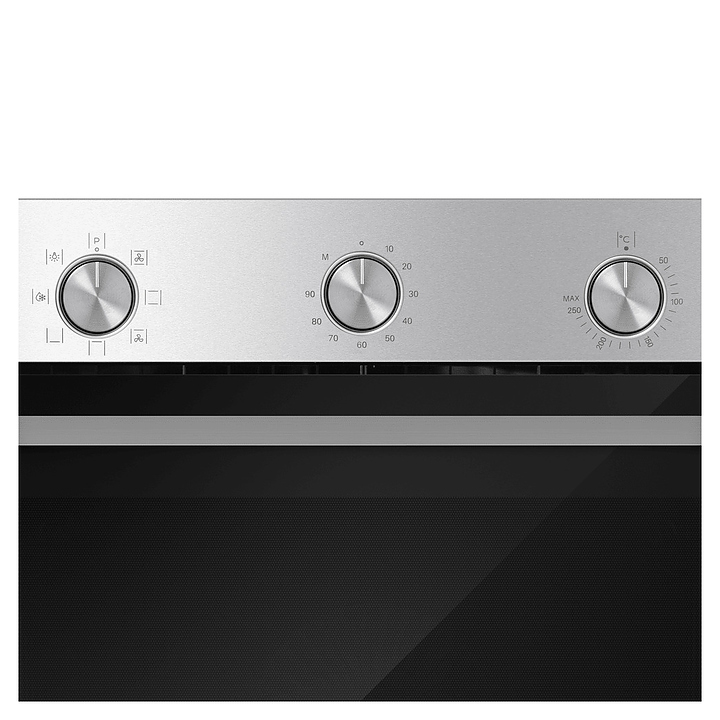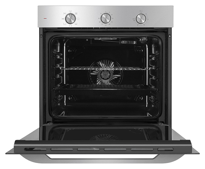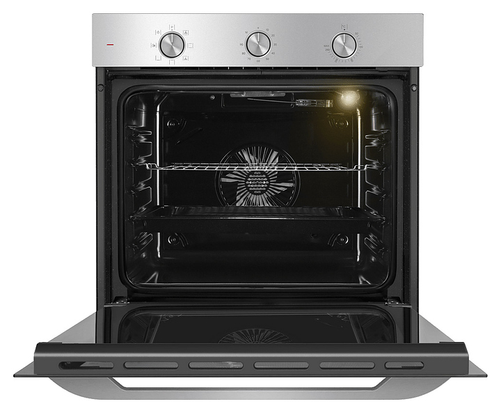 Встраиваемый электрический духовой шкаф Maunfeld FEOF7871S предназначен для приготовления большого ассортимента блюд в домашних условиях. Модель оснащена камерой с расположенным в задней стенке вентилятором, верхним и нижним нагревательными элементами, 2 боковыми стойками с 5 уровнями направляющих для противней, откидной дверью со смотровым окном, уплощенной дугообразной горизонтальной рукояткой во всю ширину двери, кабелем питания с евровилкой и расположенной в верхней части фронта панелью управления с 3 поворотными цилиндрическими переключателями. Корпус выполнен из высококачественной стали, фронт двери с покрытием черного цвета и полным остеклением без винтового крепежа прозрачным закаленным стеклом, боковые стойки и решетка для гриля – из металла с хромированной поверхностью, противень – из стали с эмалированным покрытием, верхняя фасадная панель, рукоятка и переключатели – из металла с матовой поверхностью цвета нержавеющей стали.