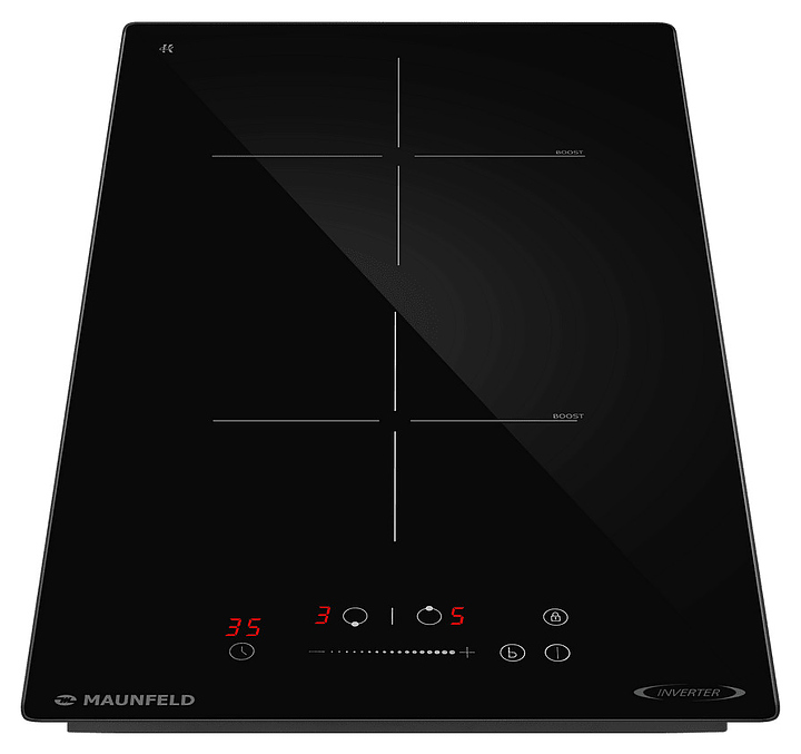 Индукционная варочная панель Maunfeld AVI3026SBK предназначена для приготовления большого ассортимента блюд в домашних условиях. Принцип работы основан на непосредственном нагреве металлической посуды создаваемыми высокочастотным магнитным полем индуцированными вихревыми токами. Модель оснащена 2 варочными зонами различной мощности, кабелем питания, расположенной в центре фронта электронной панелью управления с сенсорными функциональными клавишами и 3 светодиодными цифровыми дисплеями с красной подсветкой индикации. Рабочая поверхность выполнена из высококачественной износостойкой стеклокерамики черного цвета с прямой кромкой.