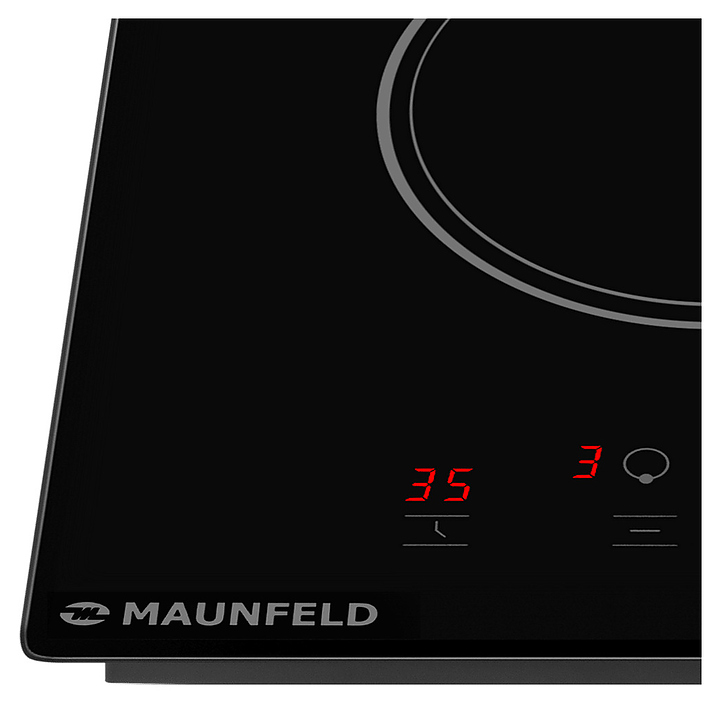 Индукционная варочная панель Maunfeld AVI3022BK предназначена для приготовления большого ассортимента блюд в домашних условиях. Принцип работы основан на непосредственном нагреве металлической посуды создаваемыми высокочастотным магнитным полем индуцированными вихревыми токами. Модель оснащена 2 варочными зонами различной мощности, кабелем питания, расположенной в центре фронта электронной панелью управления с сенсорными функциональными клавишами и 3 светодиодными цифровыми дисплеями с красной подсветкой индикации. Рабочая поверхность выполнена из высококачественной износостойкой стеклокерамики черного цвета с прямой кромкой.