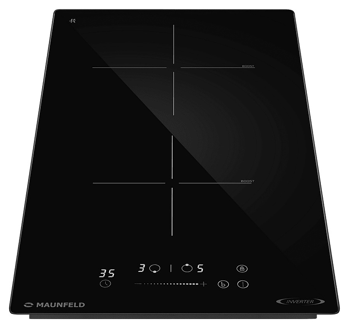 Индукционная варочная панель Maunfeld AVI3027SBK предназначена для приготовления большого ассортимента блюд в домашних условиях. Принцип работы основан на непосредственном нагреве металлической посуды создаваемыми высокочастотным магнитным полем индуцированными вихревыми токами. Модель оснащена 2 варочными зонами различной мощности, кабелем питания, расположенной в центре фронта электронной панелью управления с сенсорными функциональными клавишами и 3 светодиодными цифровыми дисплеями с белой подсветкой индикации. Рабочая поверхность выполнена из высококачественной износостойкой стеклокерамики черного цвета с прямой кромкой.