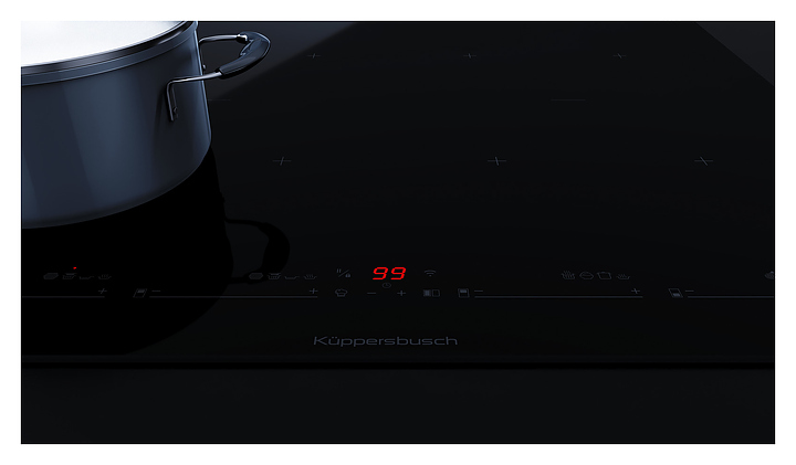 Индукционная варочная панель Kuppersbusch KI 6880.1 SR предназначена для приготовления большого ассортимента блюд на предприятиях общественного питания и торговли, гостиничных комплексах, а также в домашних условиях. Принцип работы основан на непосредственном нагреве металлической посуды создаваемыми высокочастотным магнитным полем индуцированными вихревыми токами. Модель оснащена 4 варочными зонами, панелью управления, сенсорными переключателями, цифровым дисплеем и индикацией красного цвета. Поверхность выполнена из высококачественной стеклокерамики.