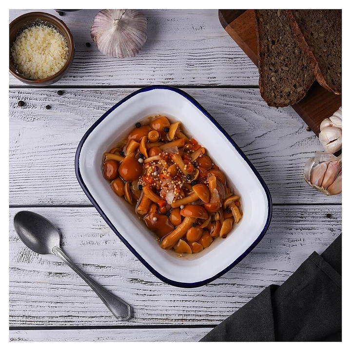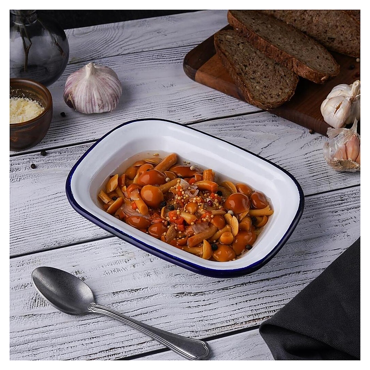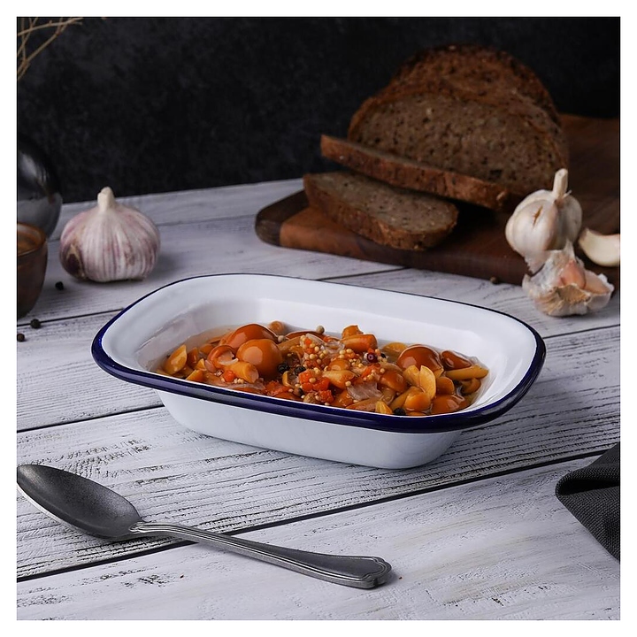 Блюдо сервировочное Sunnex CED9078 Blue Rim 400 мл 18х13 см h=4 см (эмалированная сталь) прямоугольное