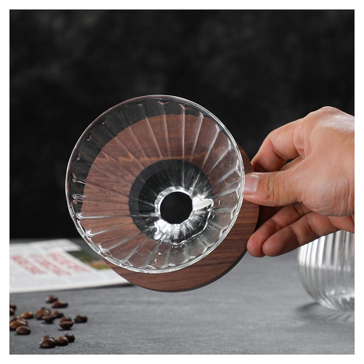 Набор P.L. Barbossa D002796 используется на предприятиях общественного питания и торговли, а также в домашних условиях для заваривания кофе методом пуровер. Набор состоит из кофейника и воронки для бумажного фильтра с молотым кофе. Кофейник оснащен зауженным кверху бортом, интегрированным в кромку изливом и Г-образной рукояткой с удобным захватом. Емкости выполнены из прозрачного стекла, внешние поверхности бортов с рельефным декором, опорное кольцо воронки и рукоятка кофейника – из дерева. Дополнительные характеристики: