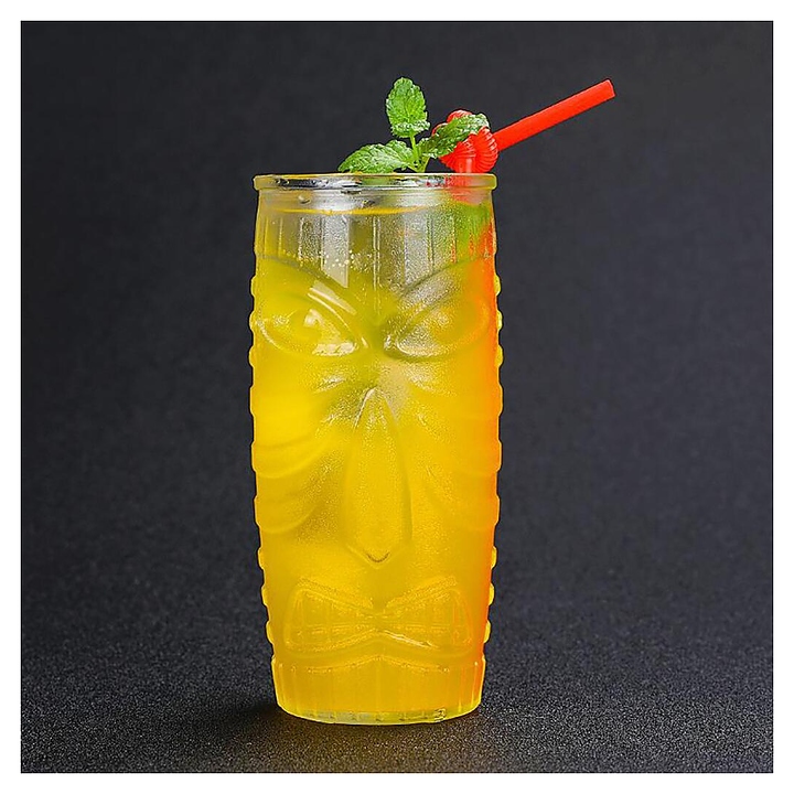Стакан P.L. Barbossa Tiki TIKI0033 используется на предприятиях общественного питания и в домашних условиях для подачи тропических коктейлей тики и других напитков. Высокая емкость круглого сечения оснащена слегка выпуклым бортом с выступающей кромкой и декоративными рельефными изображениями ритуальных масок на внешней поверхности. Возможна мойка в посудомоечной машине. Изделие выполнено из прозрачного стекла.