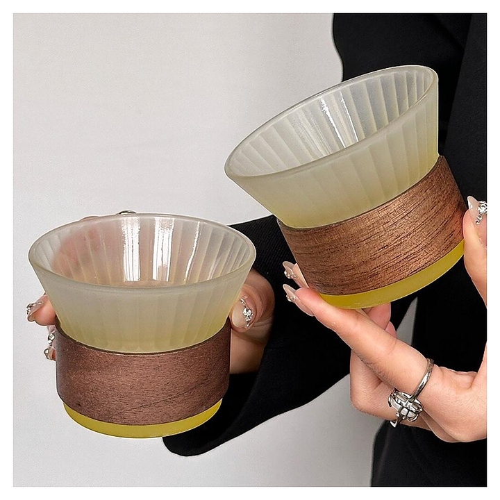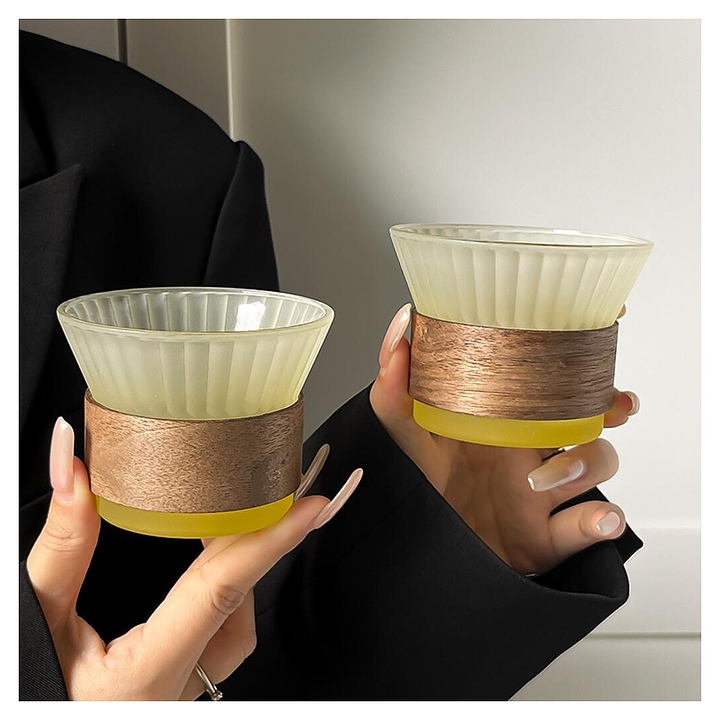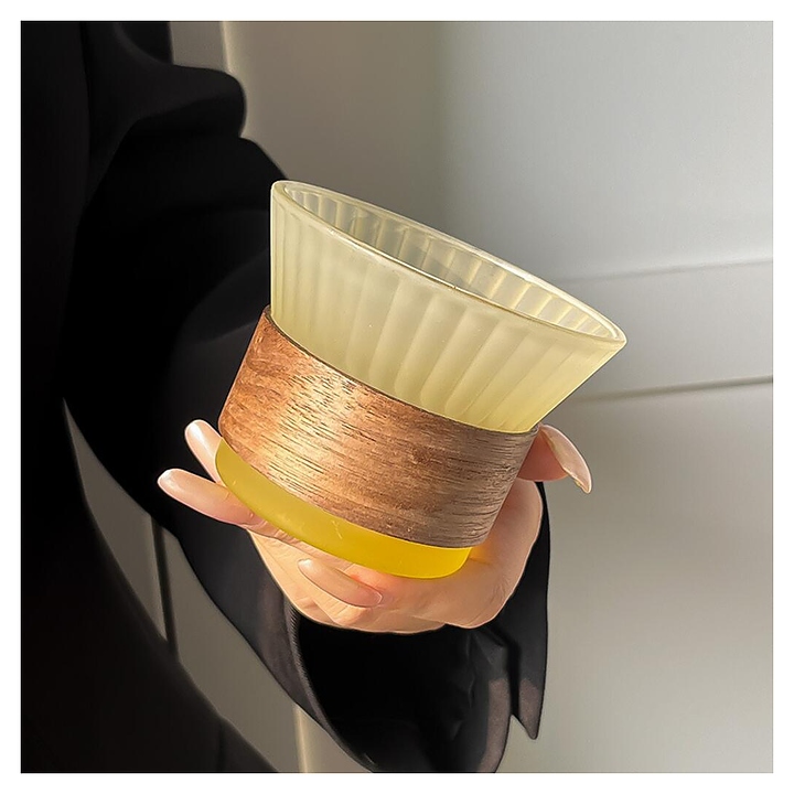 Чашка кофейная P.L. Barbossa Barista S0582-1 Japanese Style 220 мл d=9,1 см h=7,1 см (стекло) желтая матовая с деревянной вставкой