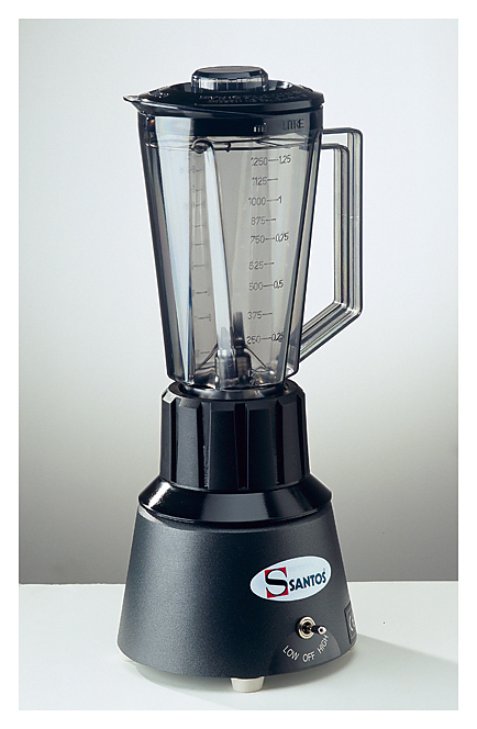 Блендер Santos серия 33G предназначен для приготовления коктейлей и напитков на предприятиях общественного питания и торговли. Модель оснащена виниловой крышкой с колпачком для наполнения кувшина в процессе работы и мощным универсальным двигателем, защищенным термопереключателем. Основание выполнено из пищевого сплава алюминия, градуированный контейнер - из поликарбоната, лезвия - из нержавеющей стали, высокопрочный захват - из специального полимера. Блендер поставляется в сером цвете. Особенности: