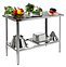 Столешница стола Kобор СР-120/70 произведена из высококачественной нержавеющей стали, а также для увеличения прочности и во избежании прогибания укреплена ЛДСП толщиной 16 мм. Ножки стола регулируются по высоте, что помогает избежать наклона рабочей поверхности стола. Каркас стола выполнен из оцинкованного уголка. Товар поставляется в разобранном виде и в упаковке для облегчения транспортировки.