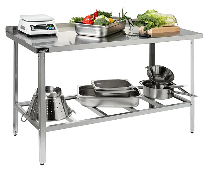 Пристенный разделочный стол Kобор СРБ-120/70/430 предназначен для обработки продуктов питания, раскатки теста и хранения кухонной техники на предприятиях общественного питания и пищевой промышленности. Особенности: