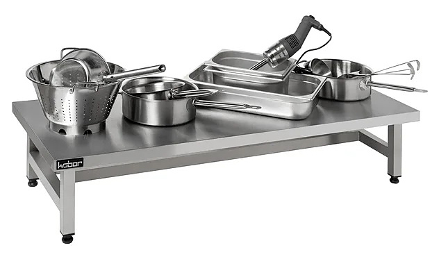 Подтоварник Кобор ПТП-90/40 служит для временного складирования кухонного инвентаря и продуктов питания. Столешница выполнена из нержавеющей стали aisi 430 с усилением ОСП, каркас из нержавеющей квадратной трубы 40х40 мм. Ножки регулируются по высоте, позволяя избежать наклона рабочей поверхности. Изделие доставляется в разобранном виде для облегчения транспортировки.
