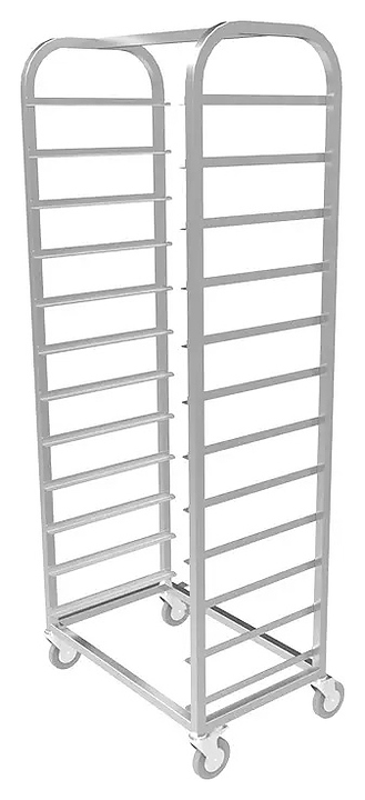Тележка-шпилька Кобор ШП-66/41 применяется для хранения и транспортировки кондитерских противней, гастроемкостей и подносов с пищевыми продуктами и кондитерскими изделиями. Шпилька имеет стеллажную конструкцию. Направляющие изготовлены из нержавеющей стали, рама - из нержавеющей квадратной трубы 25х25 мм. Перемещение шпильки осуществляется за счет 4 поворотных колес диаметром 100 мм, 2 из которых имеют тормоз.