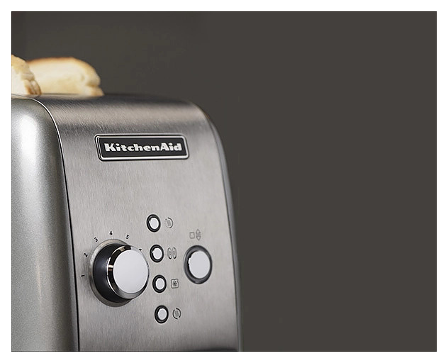 Тостер KitchenAid Artisan 5KMT221EAC предназначен для поджаривания кусочков хлеба, размораживания и приготовления замороженных тостов. Модель оснащена панелью управления с подсветкой кнопок голубым цветом и выдвижным поддоном для крошек. Корпус выполнен из стали, поворотный регулятор степени обжарки - хромированный. Особенности: