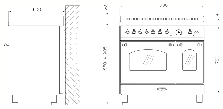 Электрическая плита Lofra RBID 96 MFTE/5i предназначена для приготовления широкого спектра первых и вторых блюд, а также выпечки и десертов в домашних условиях. Модель оснащена 2 духовыми шкафами и 5 индукционными конфорками разного размера. Дверцы духовых шкафов снабжены вставками из тройного закаленного стекла, направляющие духовых шкафов выполнены из металла, наружная часть плиты покрыта эмалью Ever Clean. В комплект поставки входят противень и 2 решетки для правого духового шкафа и противень и 2 решетки для левого духового шкафа. Левый духовой шкаф: