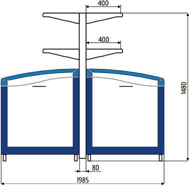 Двухсторонняя суперструктура предназначена для совместного использования с ларями-бонетами Levin ARTICA 250 при их островной установке. Конструкция оснащена 4 вместительными полками, предоставляющими дополнительное пространство для выкладки товара. Характеристики: