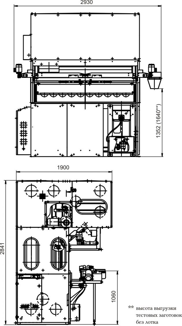 Нижняя часть шкафа, загрузчик, шкаф силовой и поддоны: 2280х1170х2130 мм