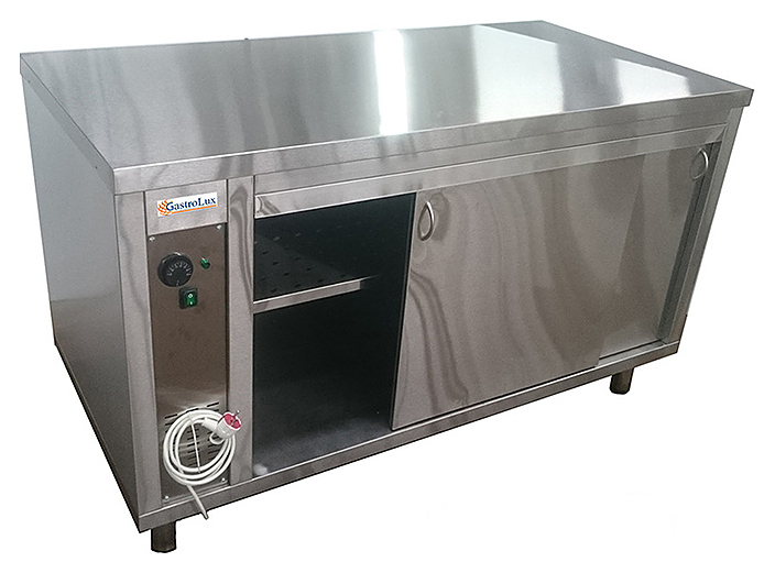 Сквозной тепловой стол Gastrolux СТО-146С предназначен для раскатки теста, обработки продуктов и поддержания в горячем состоянии готовых блюд на предприятиях общественного питания и торговли. Оборудование оснащено дверями-купе, расположенных с 2-х сторон, и полкой. Опции (приобретаются отдельно):