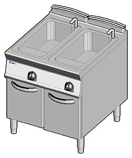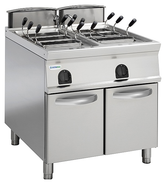 Газовая макароноварка Tecnoinox CP8FG9 серии Tecno90 используется на предприятиях общественного питания и торговли для отваривания всех видов макаронных изделий и других продуктов из теста. Модель оснащена горелками, расположенными под емкостью. Корпус изготовлен из нержавеющей стали AISI 304, ванночка - из нержавеющей стали AISI 316. Оборудование может быть расположено у стены или как центральный остров. В комплект поставки входят сменные насадки для газа, корзины не входят. Особенности: