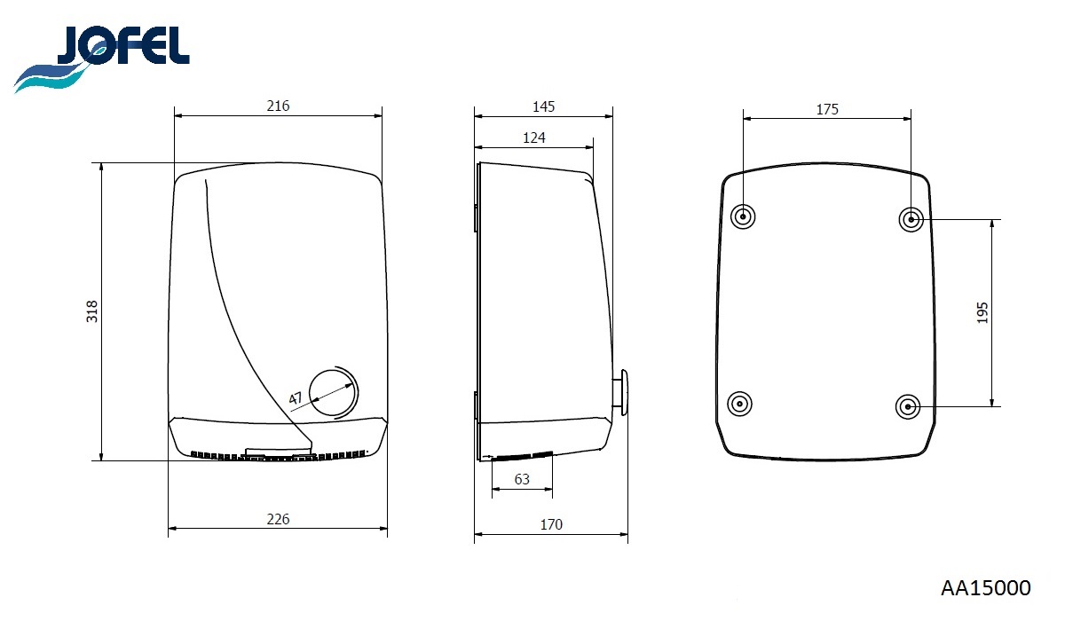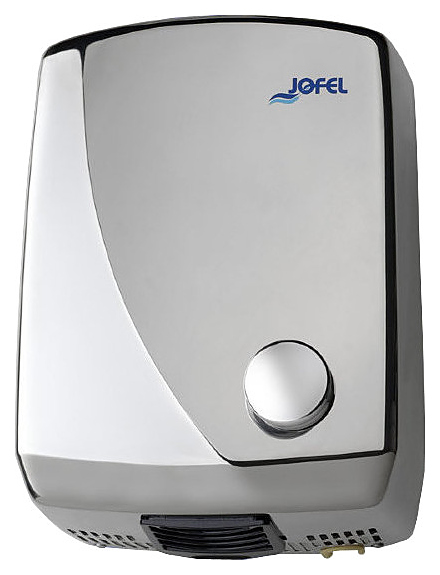 Сушилка для рук Jofel AA15000 серии FUTURA используется в туалетных комнатах кафе, баров, ресторанов, торговых центров и офисов. Прибор оснащен универсальным двигателем с щетками, кнопкой для включения и таймером для автоматического отключения через 35 секунд. Корпус выполнен из блестящей нержавеющей стали AISI 304 толщиной 1,2 мм. Характеристики: