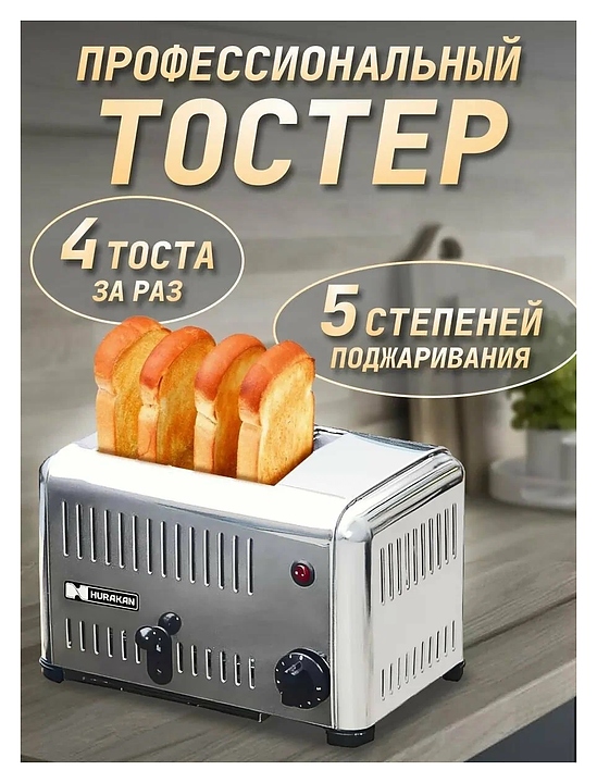 Тостер Hurakan HKN-TPT4 предназначен для подогрева и поджарки кусочков хлеба на предприятиях общественного питания и торговли. Модель оснащена таймером на 5 минут. Корпус выполнен из нержавеющей стали. Дополнительные характеристики: