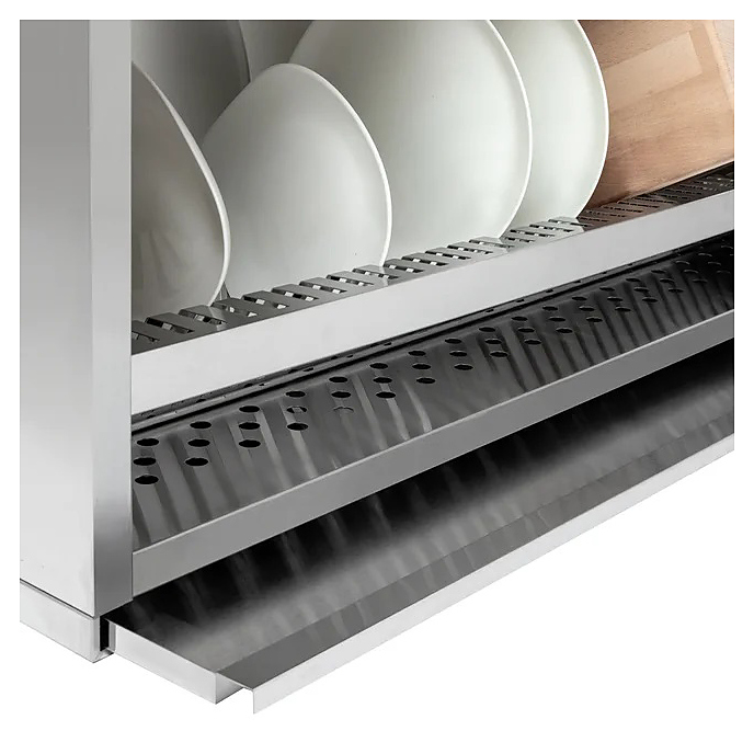 Кухонная шкаф-полка Кобор ПШСЗ-90/35 предназначена для хранения посуды, инвентаря и продуктов, не требующих специального температурного режима, на предприятиях общественного питания и торговли. Конструкция выполнена полностью из нержавеющей стали AISI 430. Дополнительные характеристики: