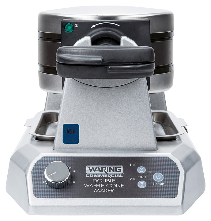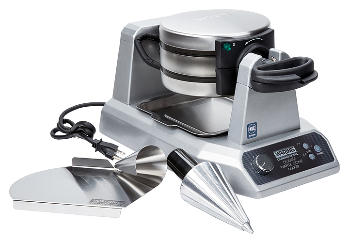 Вафельница Waring WWCM200 используется на предприятиях общественного питания и торговли для выпекания конических вафель. Рабочие поверхности покрыты тройным антипригарным покрытием для простого извлечения готовых вафель и легкой очистки пластин. Вмонтированные в пластины нагревательные элементы обеспечивают точный контроль температуры и равномерное распределение тепла. Особенности: