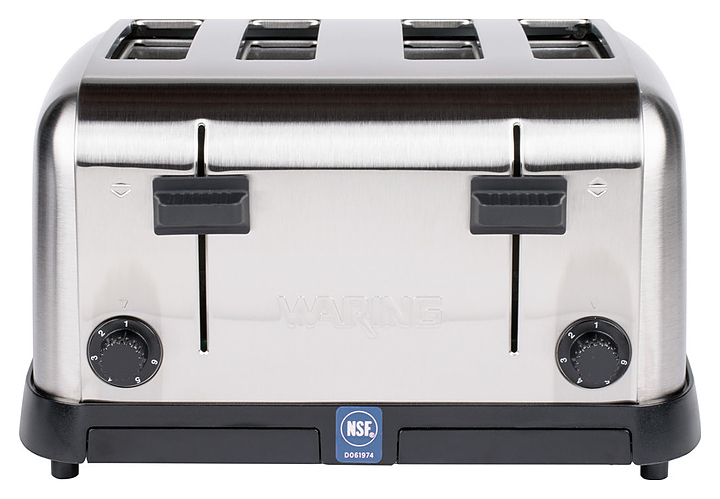 Тостер Waring WCT708 предназначен для подогрева и поджарки кусочков хлеба на предприятиях общественного питания, торговли и в домашних условиях. Модель оснащена электромеханическим управлением с 2 независимыми терморегуляторами и 2 подъемными рычагами. Корпус выполнен из нержавеющей стали. Особенности: